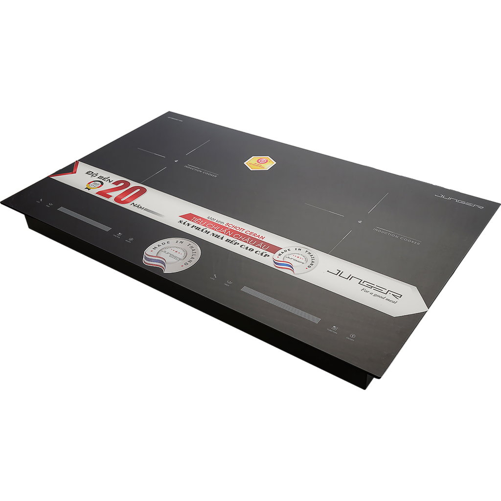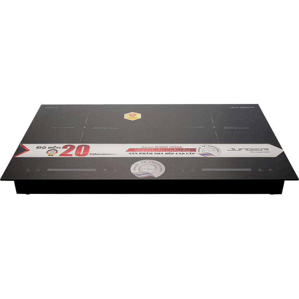 Bếp điện từ đôi Junger NKD-22+ có mặt kính ceramic sáng bóng, được sản xuất trên dây chuyền công nghệ hiện đại, nhờ đó mang lại khả năng chịu nhiệt cao và sử dụng bền bỉ.