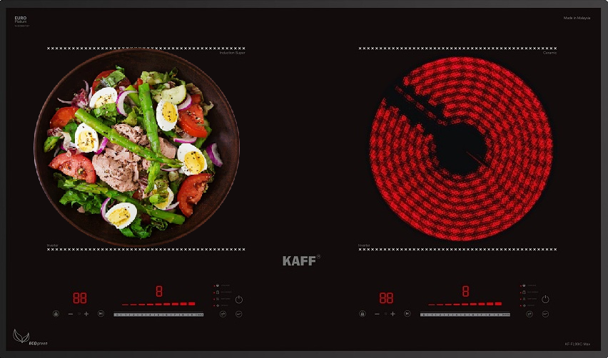 KF-FL99IC MAX New 2024– Xuất Xứ: Malaysia Đặc tính sản phẩm ▶️ Bếp kết hợp: 01 từ + 01 điện ▶️ Mặt kính EURO Platium Made In Germany siêu bền, chịu lực chịu sốc nhiệt 1000°C, bo viền hợp kim nhôm cao cấp chống va đập bảo vệ kính ▶️ Đầu đốt EGO Made in Germany thế hệ mới G5 siêu bền và tiết kiệm điện ▶️ Bo mạch IGBT SIMENS Made in Germany ▶️ Công Nghệ Quạt Tản Nhiệt Turbo nhỏ gọn siêu êm chống ồn ▶️ Công nghệ ECO Green siêu tiết kiệm điện và thân thiện môi trường ▶️ Bàn phím điều khiển cảm ứng dạng trượt Slider, 9 dải công suất + BOOSTER ▶️ Tự động chia sẻ công suất (Power management) cho các vùng nấu khách nhau ▶️ Chức năng tự động tắt bếp khi để quên và khi không có nồi ▶️ Công nghệ biến tần INVERTER tiết kiệm 40% điện năng ▶️ Chức năng BOOSTER cực nhanh với bếp từ ▶️ Chức năng hẹn giờ, khóa trẻ em thông minh, tiện dụng ▶️ Chức năng tự nhận diện vùng nấu tiện dụng với các nồi lớn nhỏ ▶️ Chức năng INVERTER và chia sẻ công suất tiết kiệm điện năng, bảo vệ bếp ▶️ Chức năng CHIÊN RÁN ▶️ Chức năng NẤU CƠM ▶️ Chức năng HÂM NÓNG ( Keep Warm) ▶️ Chức năng TẠM DỪNG (Pause) ▶️ Chức năng cảm ứng chống tràn ▶️ Chức năng cảm ứng quá nhiệt Thông tin kỷ thuật ▶️ Công suất bếp: 2000Wx2200W (Booster 2800W) ▶️ Kích thước mặt kính: 730x430mm ▶️ Kích thước khoét đá: 680x390mm |