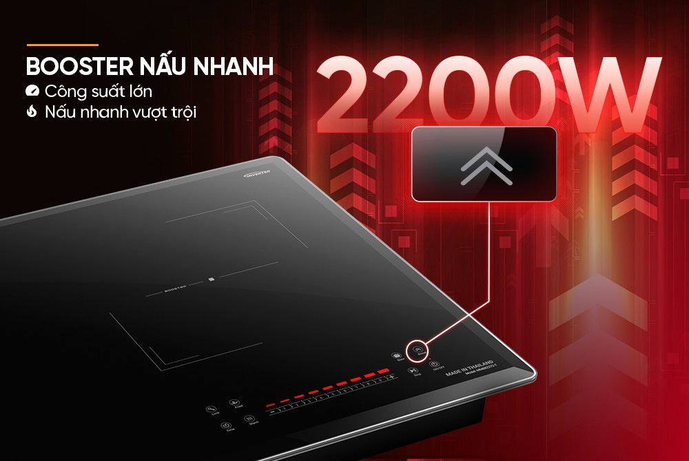 Bếp đôi điện từ Sunhouse Mama MMB82272-T sở hữu tổng công suất lên đến 2.200W, giúp: