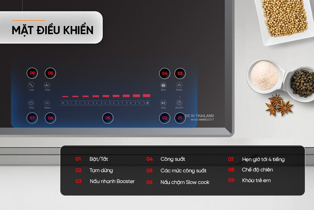 | Cảnh báo an toàn | Chống trào, quá nhiệt, nồi cạn |