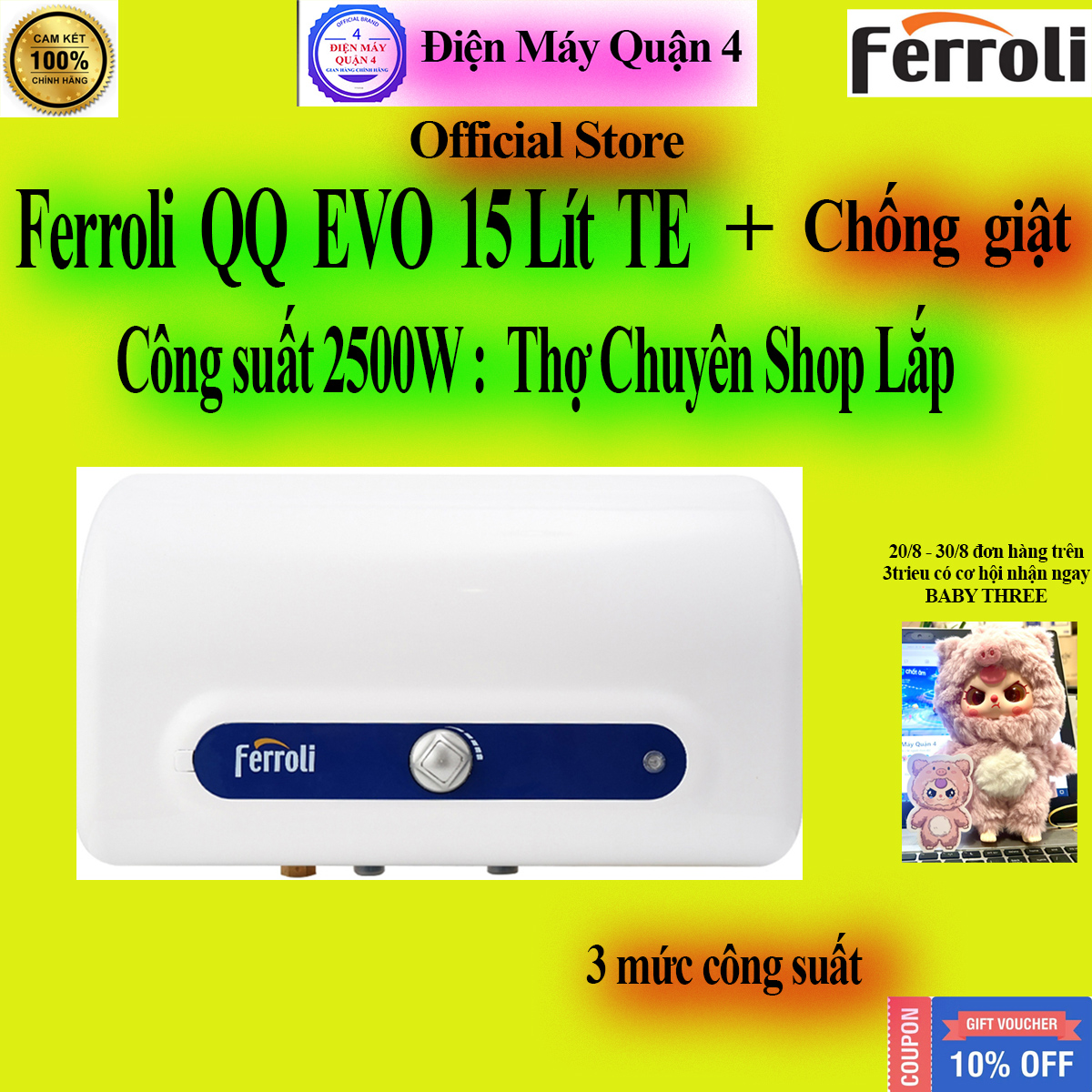 Thông số kỹ thuật Máy nước nóng Ferroli QQ Evo TE 15 lít / QQ Evo TE 20 lít / QQ Evo TE 30 lít