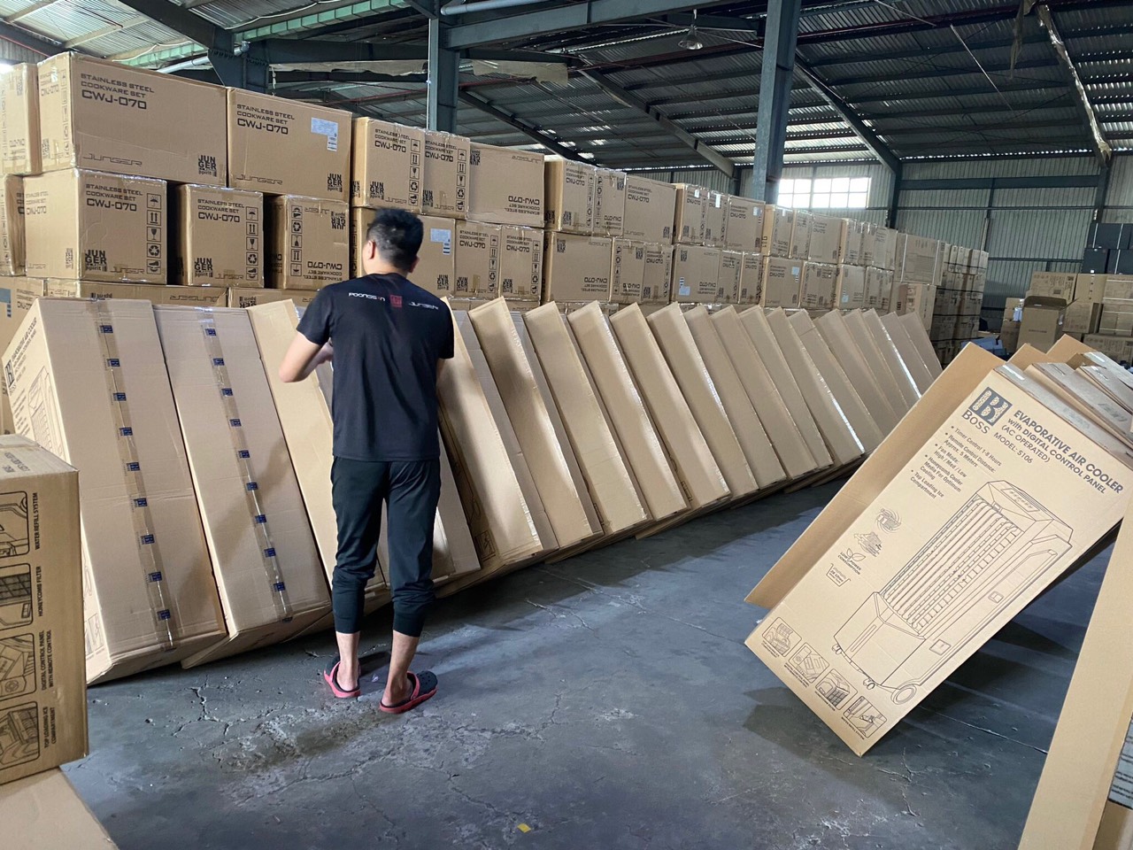 Quạt điều hòa có lưu lượng gió 1500 m3/h và công suất 100 W, thích hợp diện tích 15 – 20 m2.