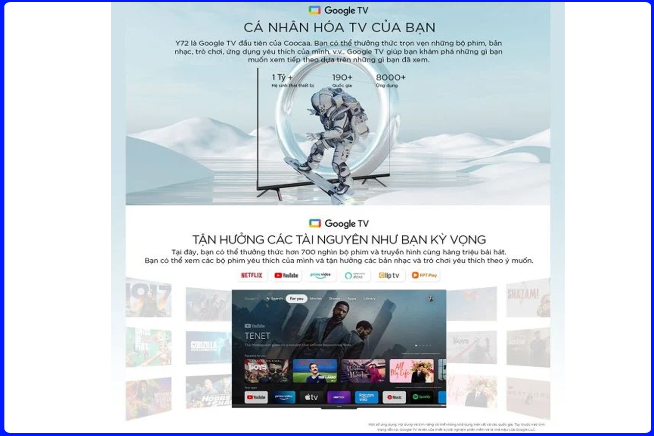 Google Tivi Coocaa 85Y73 4K 85 Inch - Màn hình tràn viền 4.0