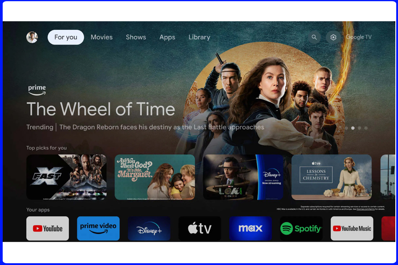 Google TV trên TCL 65C6K mang đến kho ứng dụng phong phú như YouTube, Netflix, FPT Play, giúp bạn dễ dàng truy cập nội dung yêu thích.
