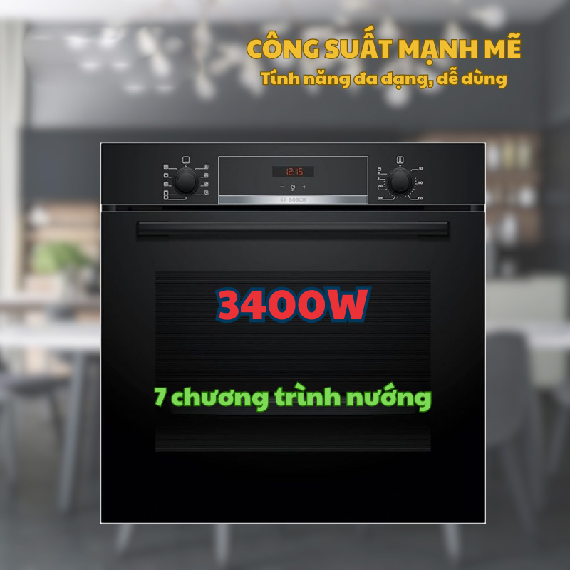Bosch HBA514BB3 tích hợp 7 phương pháp nướng khác nhau, dễ dàng đáp ứng mọi nhu cầu nấu nướng: