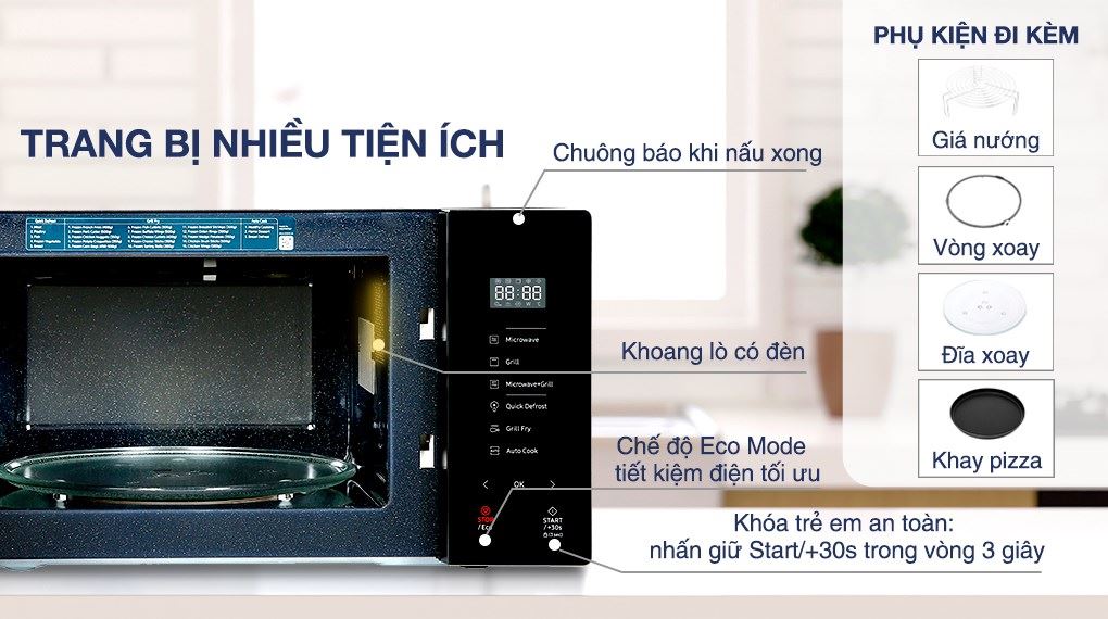 | Tiện ích | Khóa trẻ em, chuông báo, hẹn giờ 99 phút, ECO |