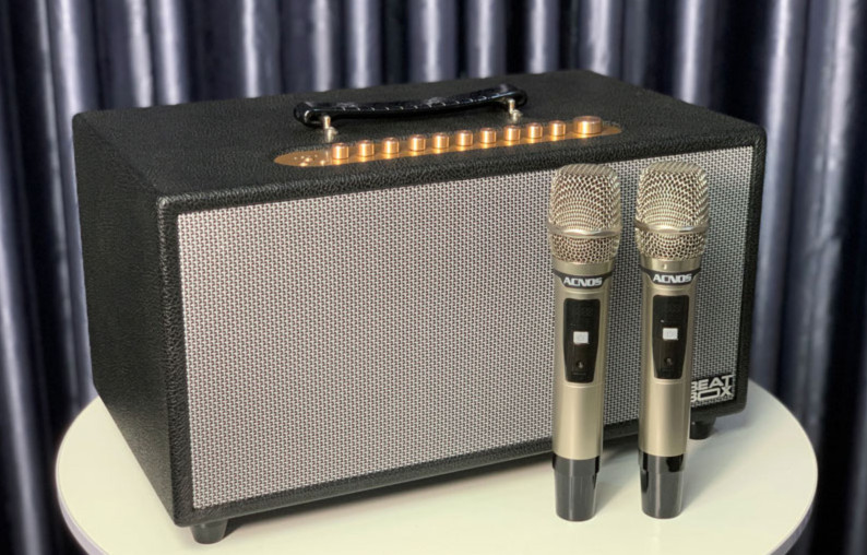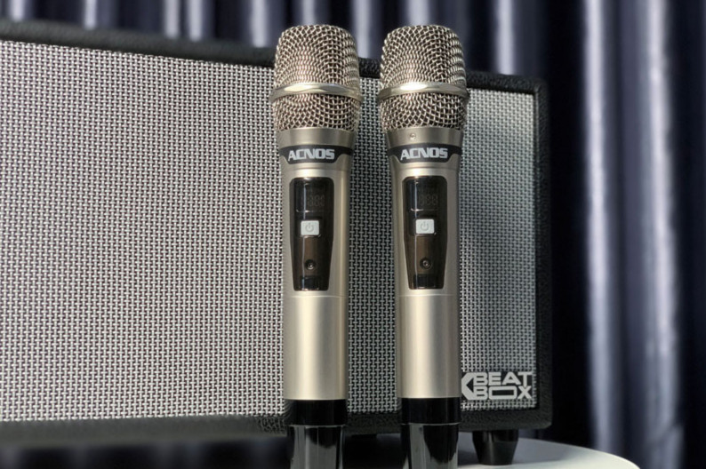 - Micro không dây cao cấp: 2 micro không dây đi kèm giúp bạn hát karaoke dễ dàng, thoải mái.