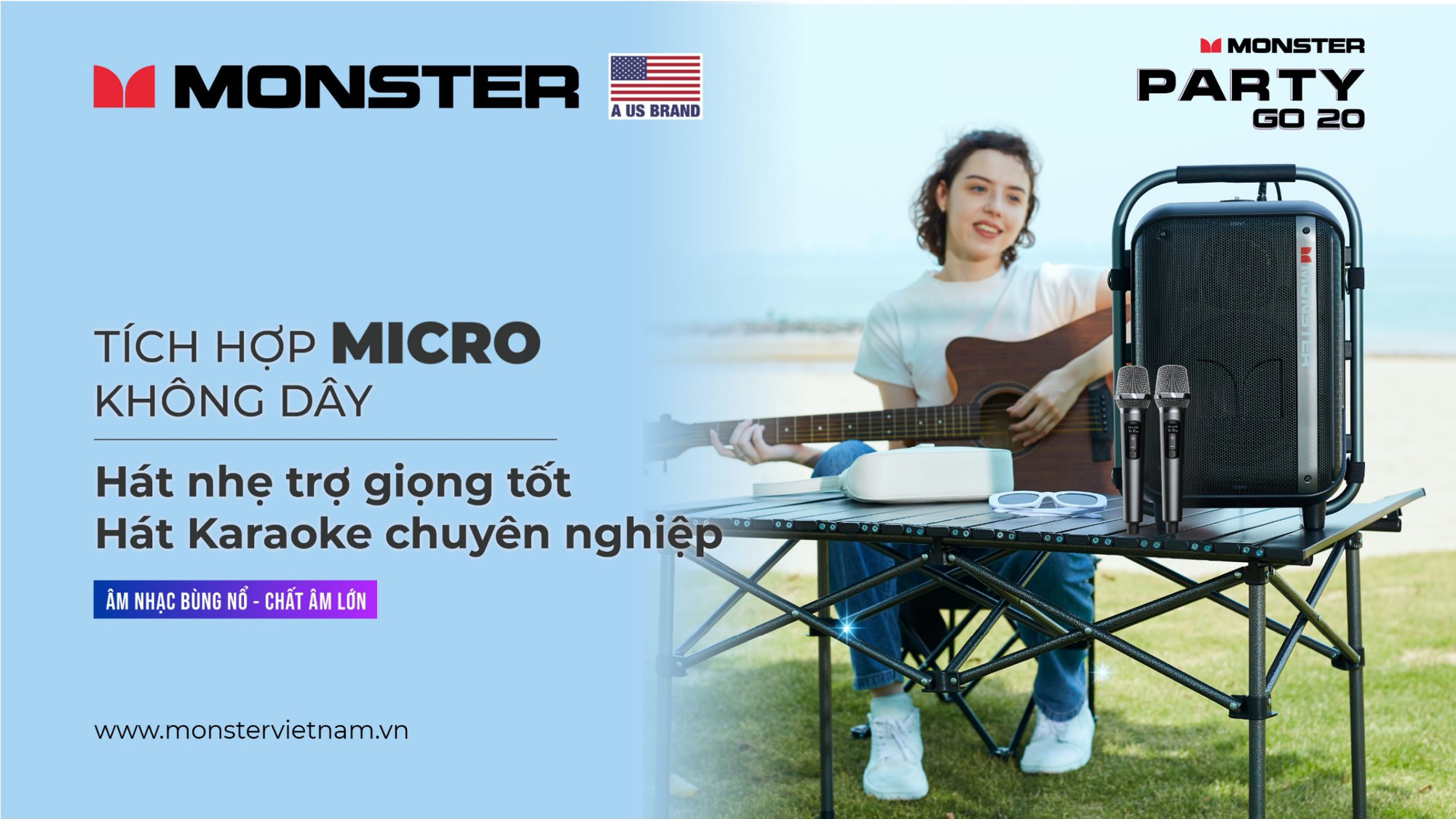 Loa karaoke Monster Party Go 20 đi kèm với 2 micro không dây cao cấp, giúp bạn hát karaoke mọi lúc mọi nơi.