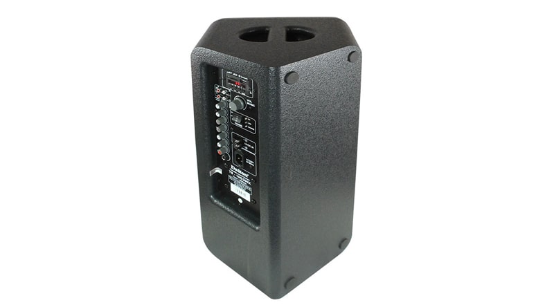 Thân loa có thiết kế nhỏ gọn, tổng trọng lượng của loa chỉ 20 kg, kích thước loa chỉ dài 55,5 x 30,5 x sâu 35 cm. Và để hỗ trợ cho việc di chuyển, loa được trang bị tay cầm trên đỉnh loa giúp bạn có thể dễ dàng nhấc và di chuyển loa theo ý muốn.