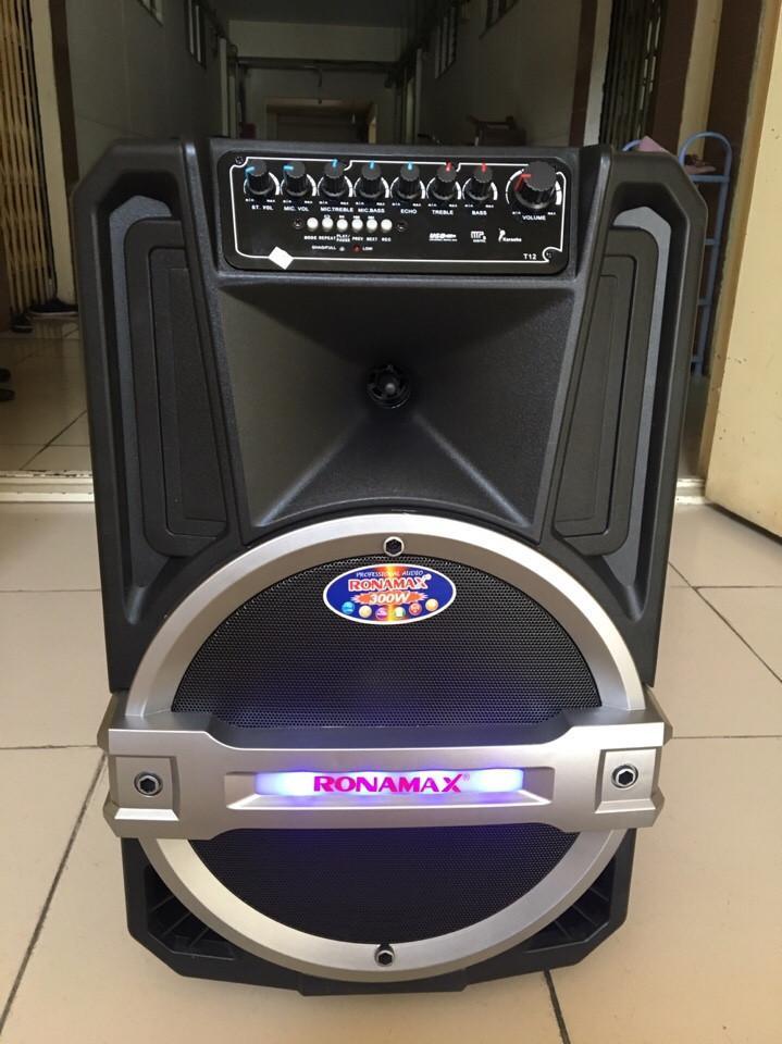 Loa kéo di động Ronamax T12 3 tấc thùng nhựa, có đèn LED sáng khi nghe nhạc, loa bass 12 inch, công suất thực tầm 100W/ max 350W, giá mềm nhưng hát karaoke rất hay, mic rất hút...