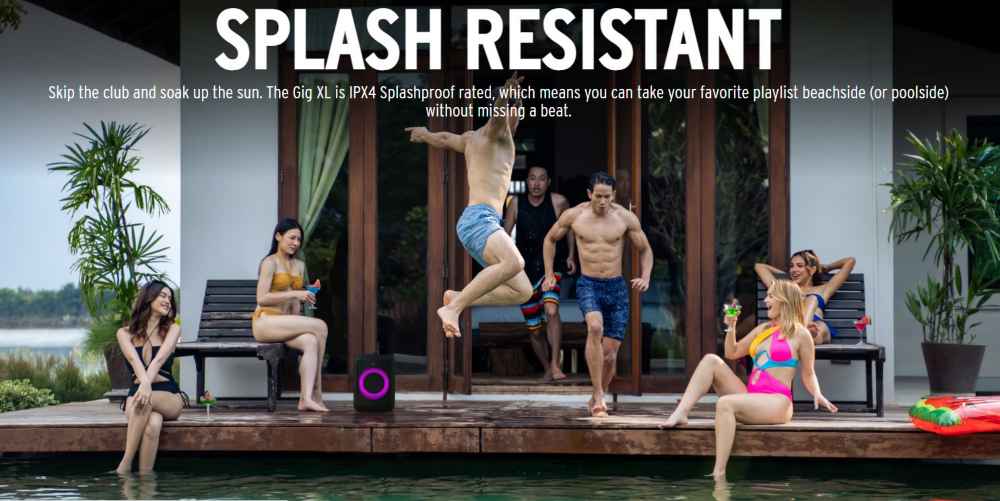 Loa Klipsch GIG XL được trang bị chức năng chống nước tiêu chuẩn IPX4, giúp bảo vệ loa khỏi các tác động của môi trường. Bạn có thể mang chiếc loa này đi dã ngoại, đi bơi hoặc đơn giản là sử dụng nó trong nhà tắm.