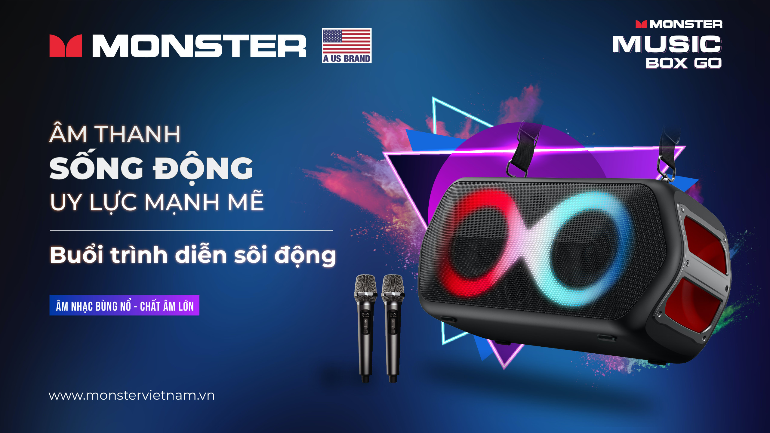 - Công suất mạnh mẽ: Loa Monster Musicbox Go được trang bị 2 loa Bass 12cm và 1 loa Tweeter 5cm, cho công suất đỉnh lên đến 80W, mang đến âm thanh sống động, đầy uy lực.