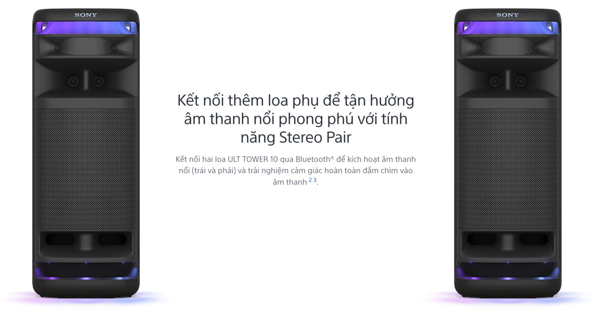 Đắm chìm trong âm thanh sống động, ánh sáng rực rỡ và trải nghiệm karaoke cực đỉnh với siêu phẩm loa di động Sony ULT Tower 10 SRS-ULT1000. Không chỉ là một chiếc loa thông thường, đây là "trái tim" của mọi bữa tiệc, mang đến không gian giải trí tuyệt đỉnh ngay tại ngôi nhà bạn.