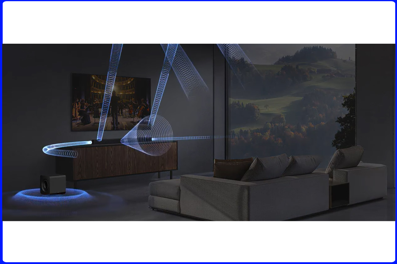 Smart Soundbar sử dụng chế độ tùy chỉnh AI giúp tự động điều chỉnh các cài đặt âm thanh theo môi trường xung quanh và nội dung phát: