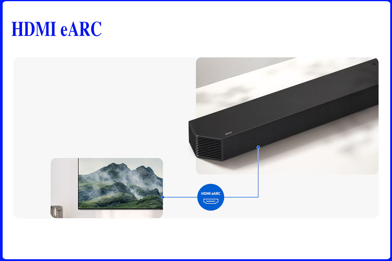 eARC và Anynet+: Hỗ trợ truyền tải âm thanh chất lượng cao, tối ưu hóa khả năng kết nối với TV và các thiết bị giải trí khác.