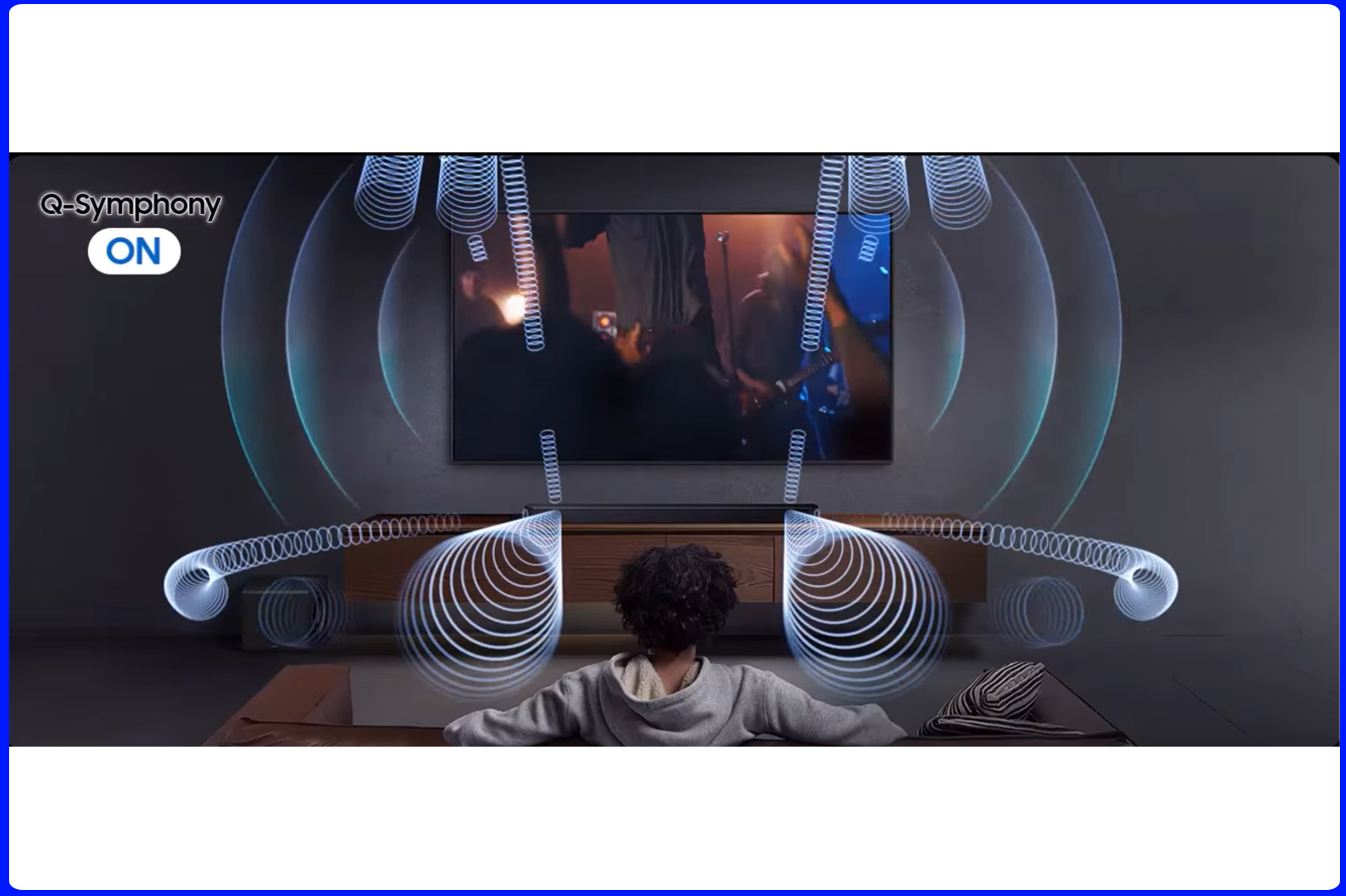 Tính năng kết nối thông minh: Q-Symphony cho phép kết hợp âm thanh từ TV và soundbar, tạo ra trải nghiệm âm thanh đồng bộ và mạnh mẽ.