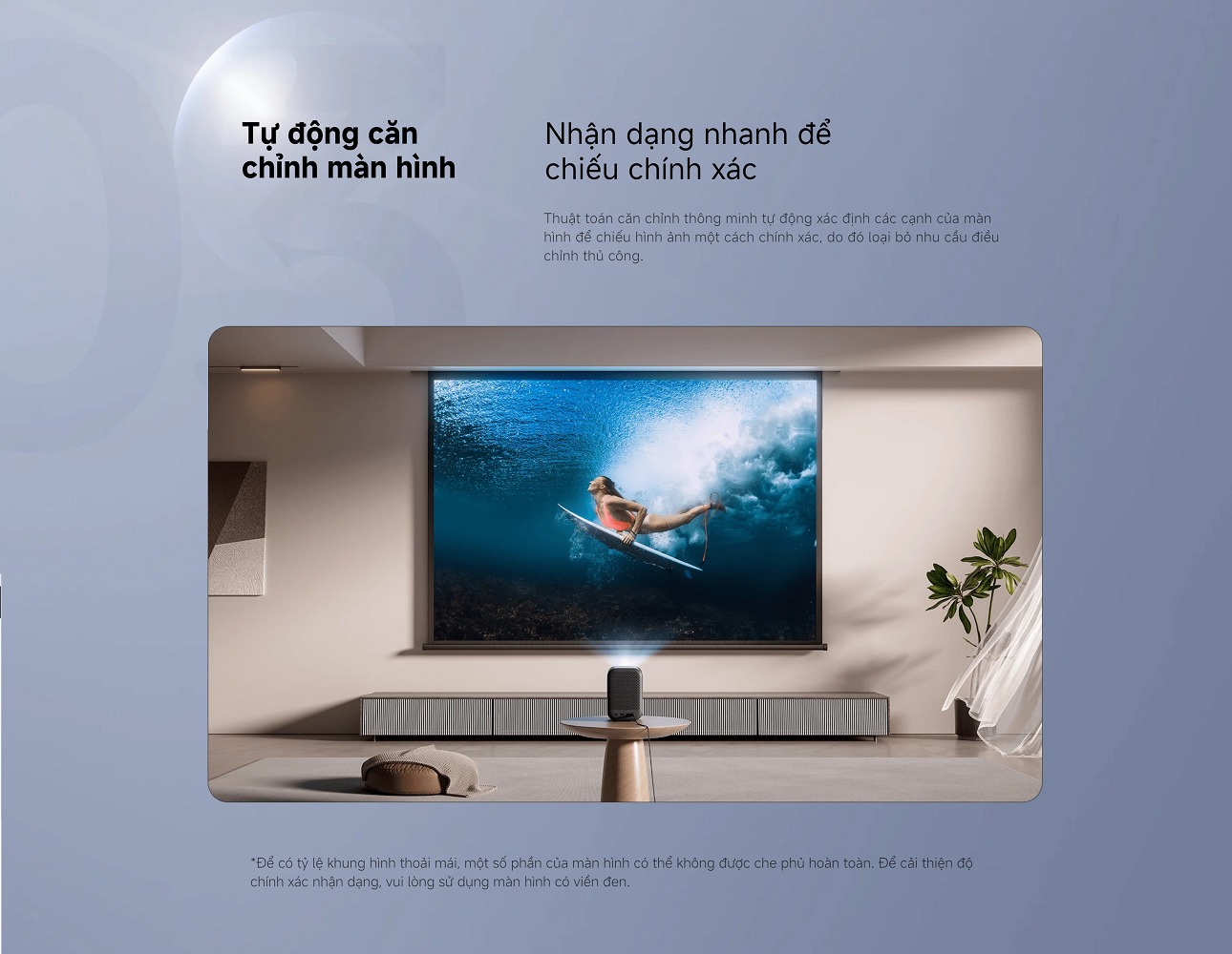 Máy chiếu hỗ trợ lấy nét tự động, chỉnh cân hình tự động và tránh vật cản thông minh, giúp người dùng thiết lập nhanh chóng, chỉ vài giây đã có ngay khung hình hoàn hảo.