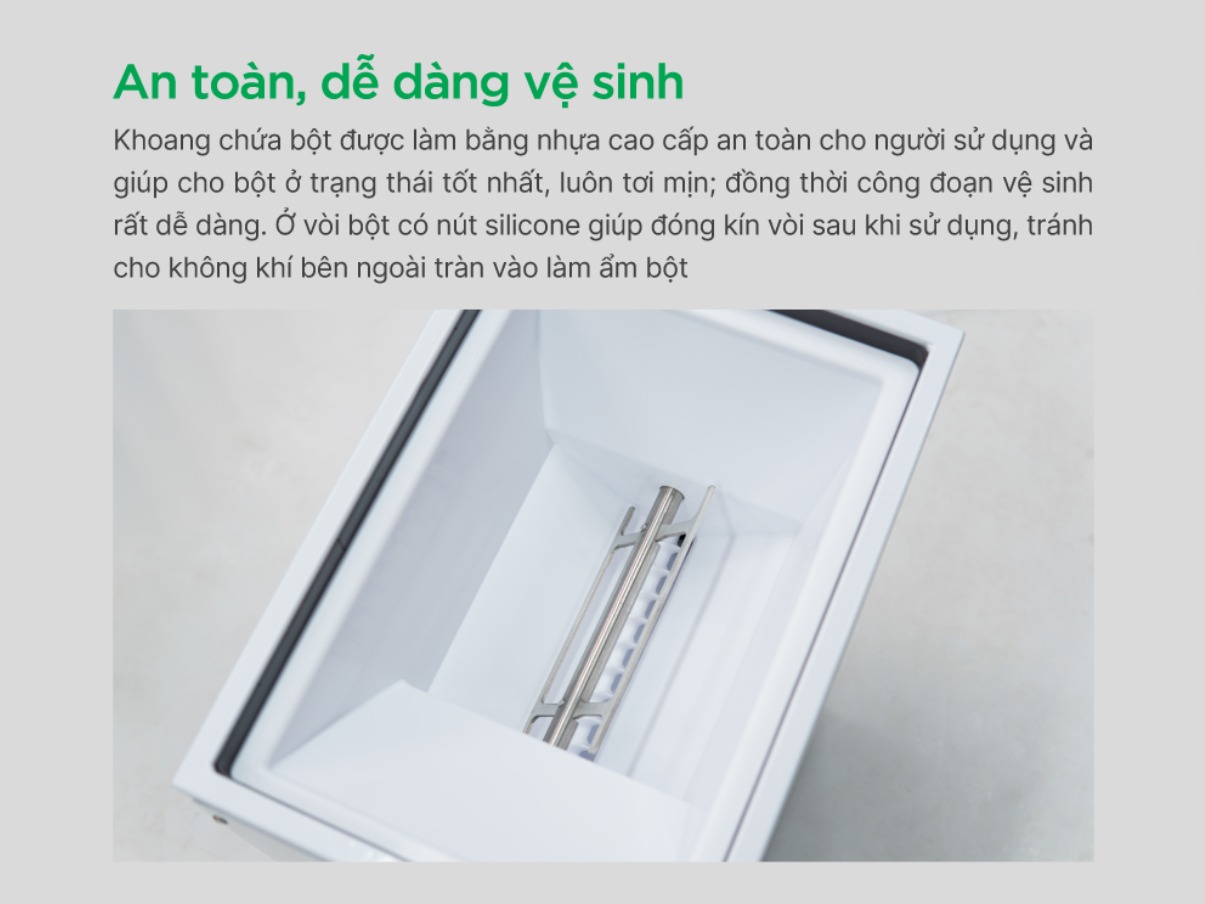 | Chất liệu phễu chứa | Nhựa thực phẩm cao cấp |