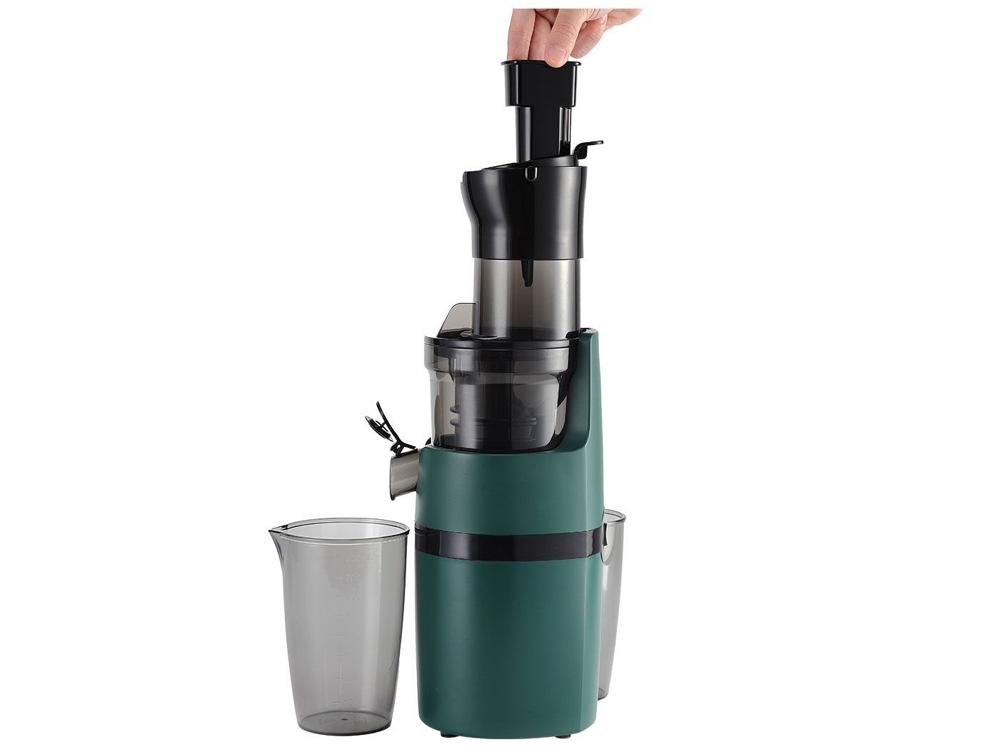 Máy ép chậm hạn chế quá trình oxy hóa và làm chậm quá trình tách nước của nước ép. Đặc biệt, ống tiếp nguyên liệu có đường kính lớn lên tới 78mm cho phép ép nguyên quả nhiều loại trái cây như cà chua, táo, dứa, kiwi,...mà không tốn thời gian cắt nhỏ, giúp tiết kiệm thời gian sơ chế nguyên liệu.