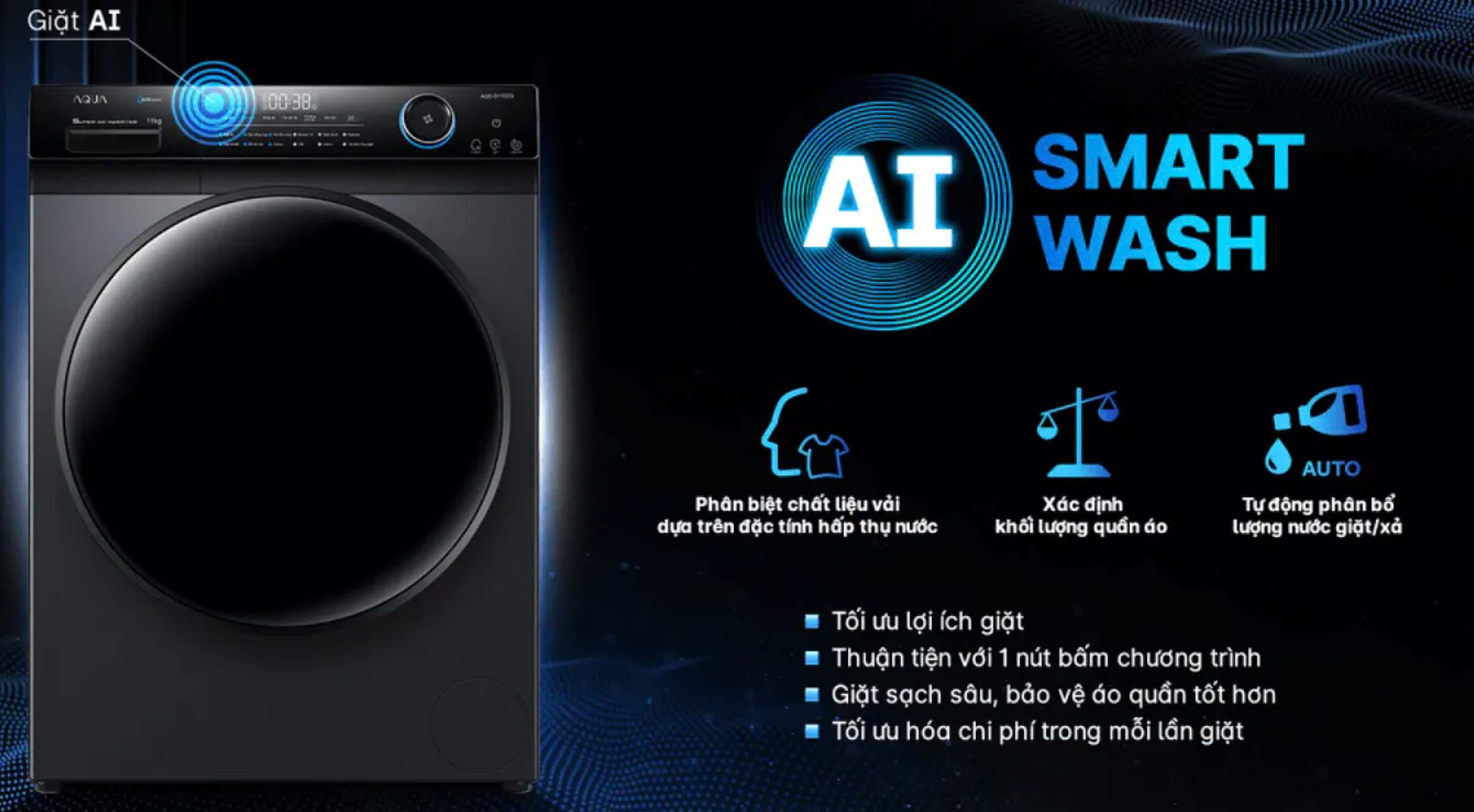Máy giặt Aqua Inverter 10 kg AW10-B4959U1K(B) là dòng sản phẩm mới nhất từ thương hiệu Aqua, nổi bật với thiết kế cửa trước sang trọng, công nghệ tiên tiến và nhiều tiện ích vượt trội. Máy không chỉ giúp tiết kiệm điện năng, nước mà còn đảm bảo quần áo luôn sạch sẽ, bền đẹp, phù hợp với nhu cầu của các gia đình hiện đại.