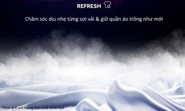 Tính năng Refresh làm mới quần áo bằng hơi nước ấm, giúp loại bỏ mùi khó chịu, giảm nhăn và giữ nguyên phom dáng cho quần áo như mới. Điều này đặc biệt hữu ích đối với các loại trang phục đắt tiền, yêu cầu bảo quản kỹ lưỡng.