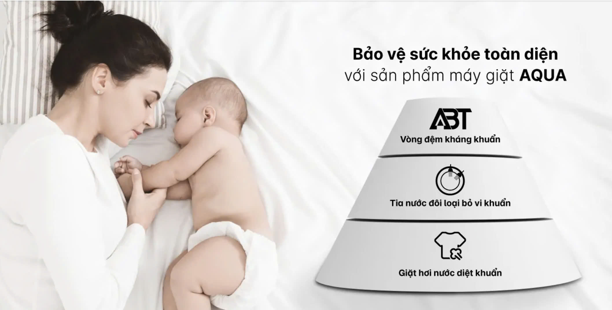 Vòng đệm ABT với khả năng kháng khuẩn cao, ngăn chặn sự phát triển của vi khuẩn và nấm mốc ở khu vực cửa máy giặt, giúp bảo vệ quần áo và sức khỏe của người dùng.