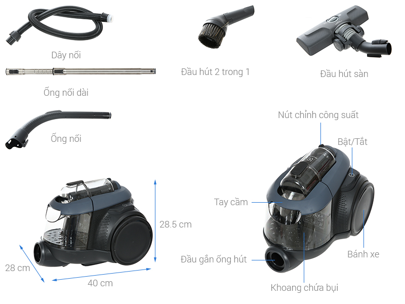 Điều chỉnh sức hút bụiDây điện tự thu gọn