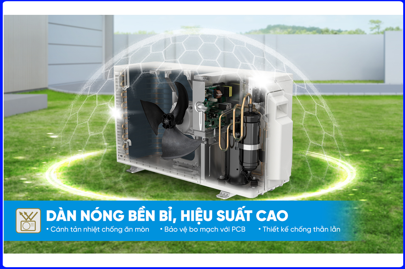 Chất liệu dàn tản nhiệt Ống đồng - Cánh nhôm phủ 2 lớp tĩnh điện