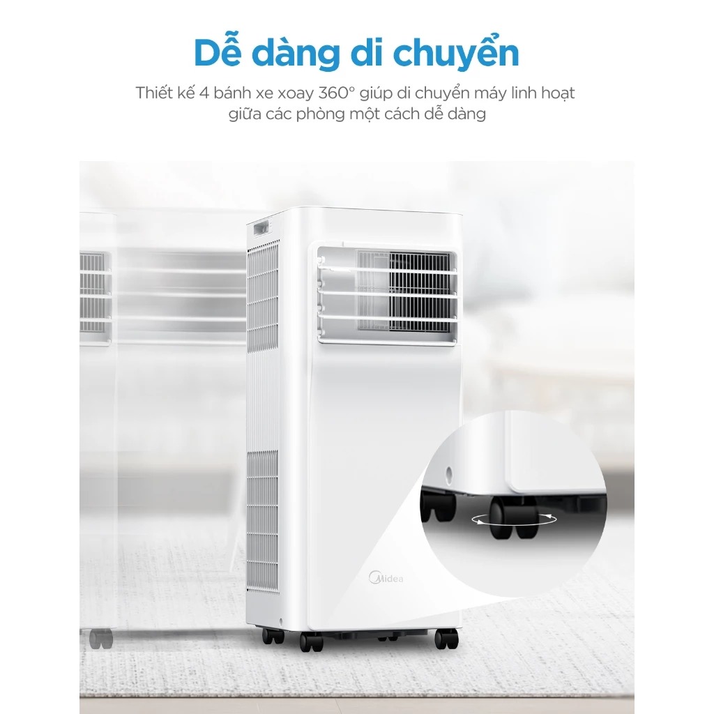 MÁY LẠNH DI ĐỘNG MIDEA MPPA-09CRN7 là một trong những thiết bị làm mát hiện đại, mang đến sự tiện lợi và hiệu quả vượt trội cho người dùng. Trong thời tiết nóng bức, việc sở hữu một chiếc máy lạnh di động vừa dễ sử dụng, vừa không cần lắp đặt phức tạp là điều mà bất kỳ ai cũng mong muốn. Sản phẩm này không chỉ đáp ứng nhu cầu làm mát mọi lúc mọi nơi mà còn tích hợp nhiều tính năng thông minh, giúp bạn tiết kiệm chi phí và tận hưởng không gian sống thoải mái hơn bao giờ hết.