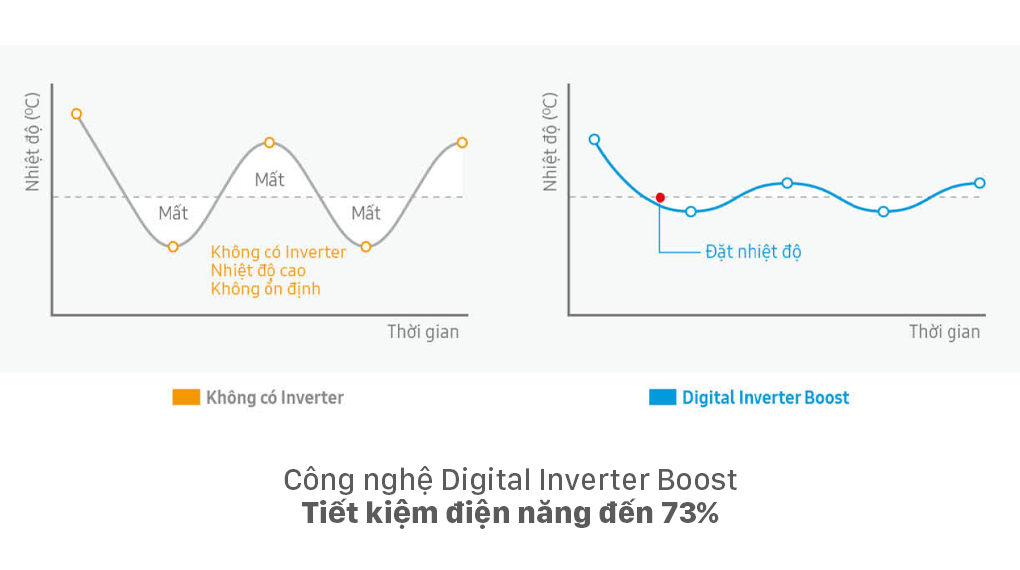 - Công nghệ Digital Inverter Boost: Giúp máy nén hoạt động với công suất cao nhưng vẫn mang lại hiệu quả tiết kiệm điện đến 73%, (77% điện năng khi máy ở chế độ WindFree)