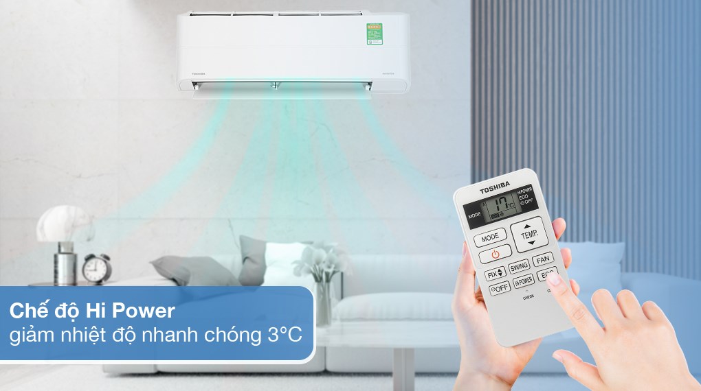 Làm lạnh nhanh trong thời gian ngắn qua công nghệ Hi Power. Chỉ cần nhấn nút Hi Power trên remote, máy sẽ tăng công suất làm lạnh để giảm nhiệt độ không gian trong thời gian ngắn nhất.