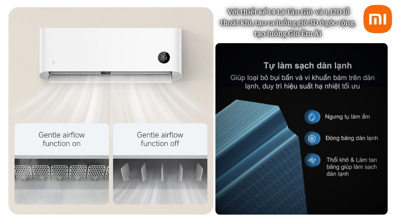 Điều hòa Xiaomi Mijia Inverter AI ASC-12WO/N1C5-VN 1.5HP được trang bị cơ chế tự làm sạch dàn lạnh thông minh, giúp máy luôn hoạt động bền bỉ và không khí trong lành hơn. Quá trình làm sạch diễn ra tự động qua 4 bước: ngưng tụ làm ẩm, đóng băng dàn lạnh, thổi khô và tan băng, từ đó loại bỏ bụi bẩn, nấm mốc và hạn chế sự phát triển của vi khuẩn. Nhờ vậy, không chỉ duy trì hiệu quả làm lạnh ổn định, máy còn bảo vệ sức khỏe gia đình, mang đến bầu không khí mát mẻ và an toàn trong suốt quá trình sử dụng.