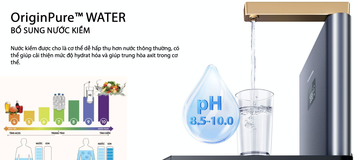 | Chức năng | Lọc nước tinh khiết, nước nóng, nước kiềm |