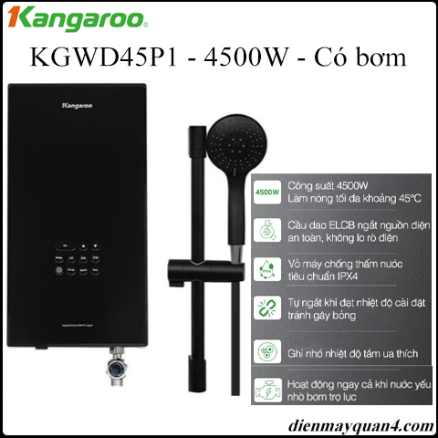 Ngay từ khi ra mắt, Kangaroo KGWD45P1 đã gây ấn tượng mạnh nhờ thiết kế hiện đại, công suất mạnh mẽ 4500W, thời gian làm nóng chỉ 15 giây và nhiều chế độ bảo vệ an toàn. Đây là lựa chọn lý tưởng cho gia đình ở cả thành phố và khu vực áp lực nước yếu nhờ tích hợp bơm trợ lực vận hành êm ái.