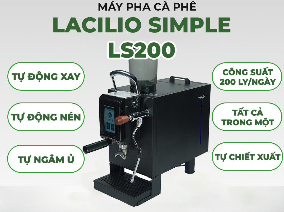 Máy pha cà phê Lacilio Simple LS200 thuộc dòng máy pha cà phê tự động chất lượng đến từ thương hiệu Lacilio của Việt Nam. Sản phẩm vận hành với công suất 2.200W với khả năng pha được 200 tách/ngày có thể đáp ứng nhu cầu sử dụng cho nhiều văn phòng, hàng quán. Hãy cùng chúng tôi tìm hiểu kỹ hơn về chiếc máy pha cà phê này bạn nhé!