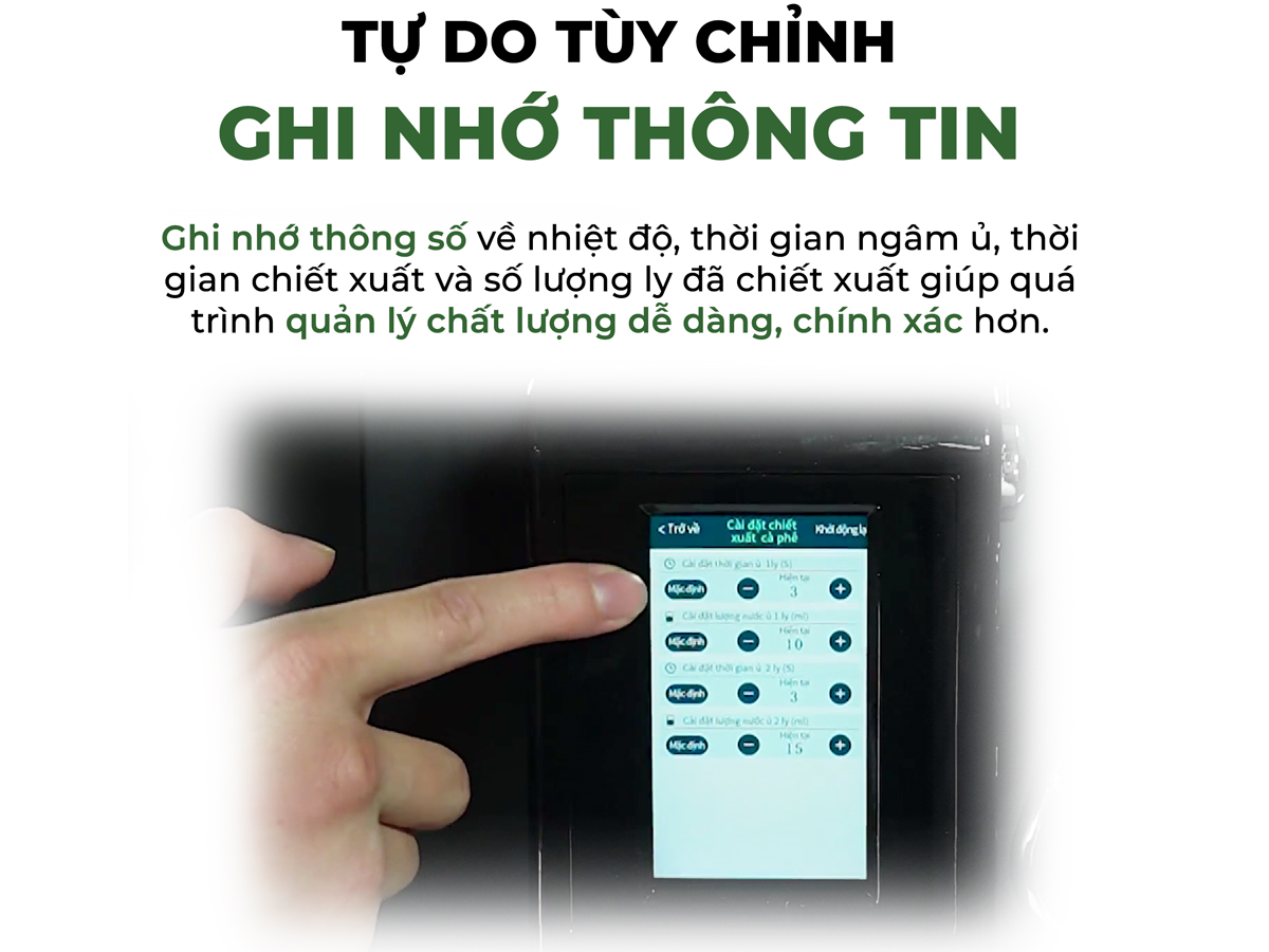 Lacilio Simple LS-200 có chức năng ghi nhớ về nhiệt độ, thời gian ngâm ủ, thời gian chiết xuất và số lượng ly đã chiết xuất giúp quá trình quản lý chất lượng trở nên dễ dàng và chính xác hơn bao giờ hết.