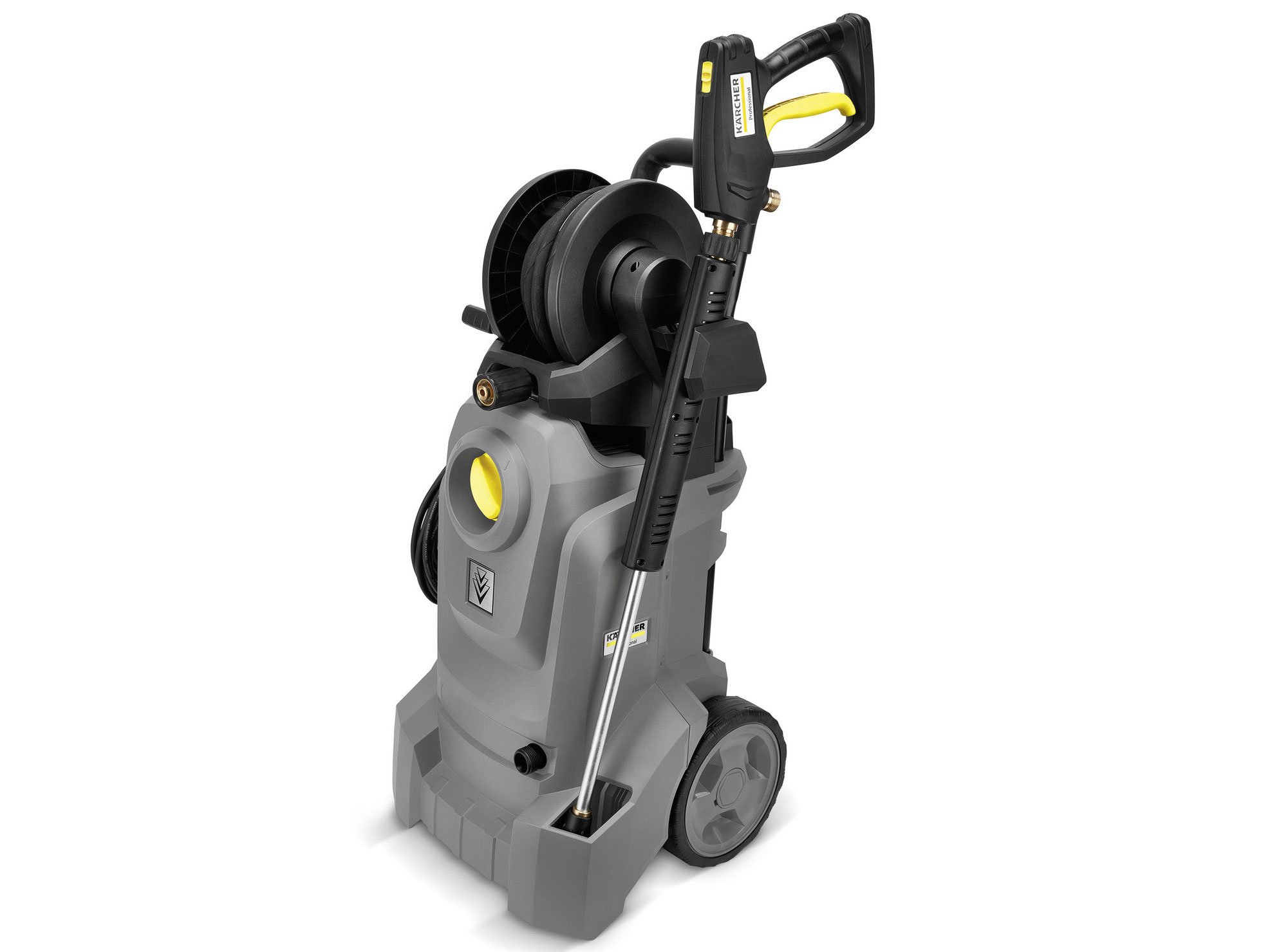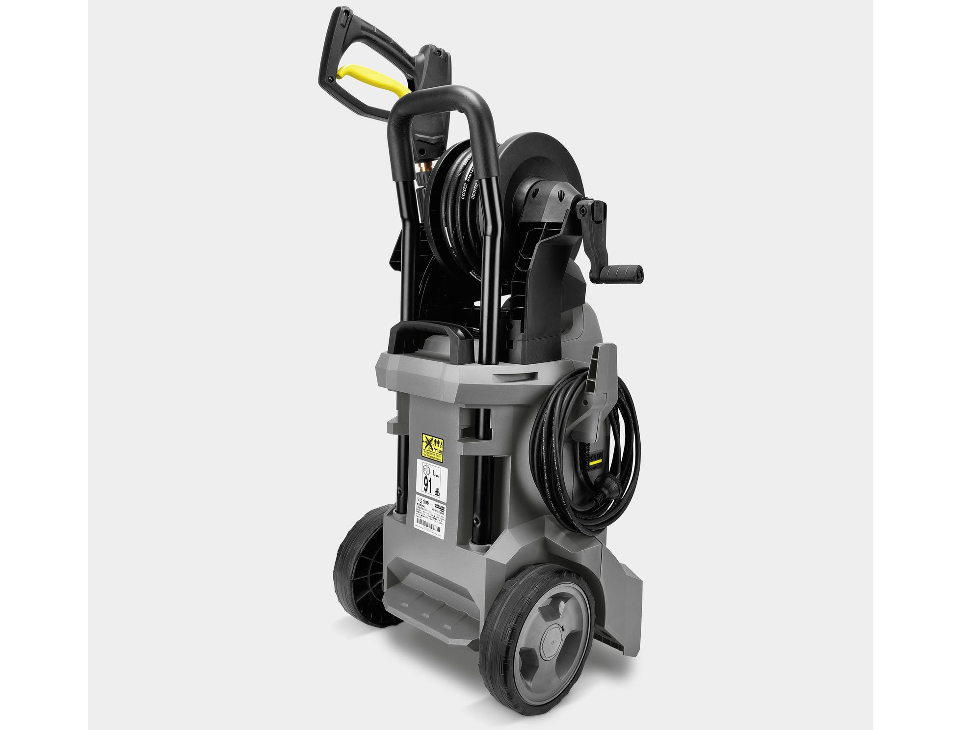 Máy phun rửa áp lực cao HD 4/10 X Classic thiết kế gọn gàng, có 2 bánh xe di chuyển.