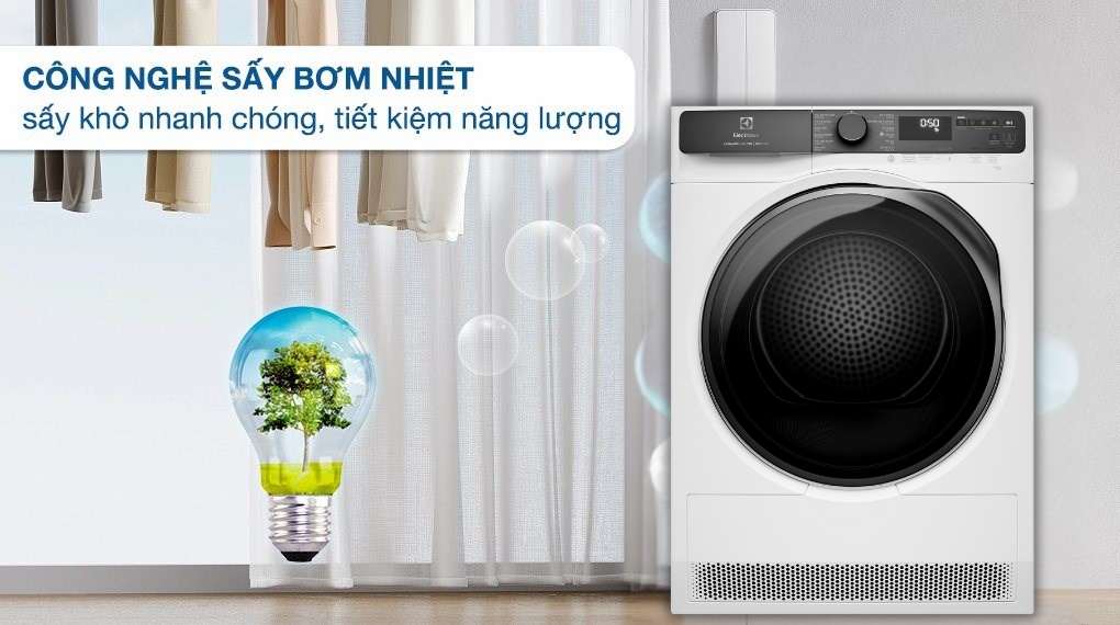 Tiết kiệm điện năng đáng kể so với máy sấy thông thường.