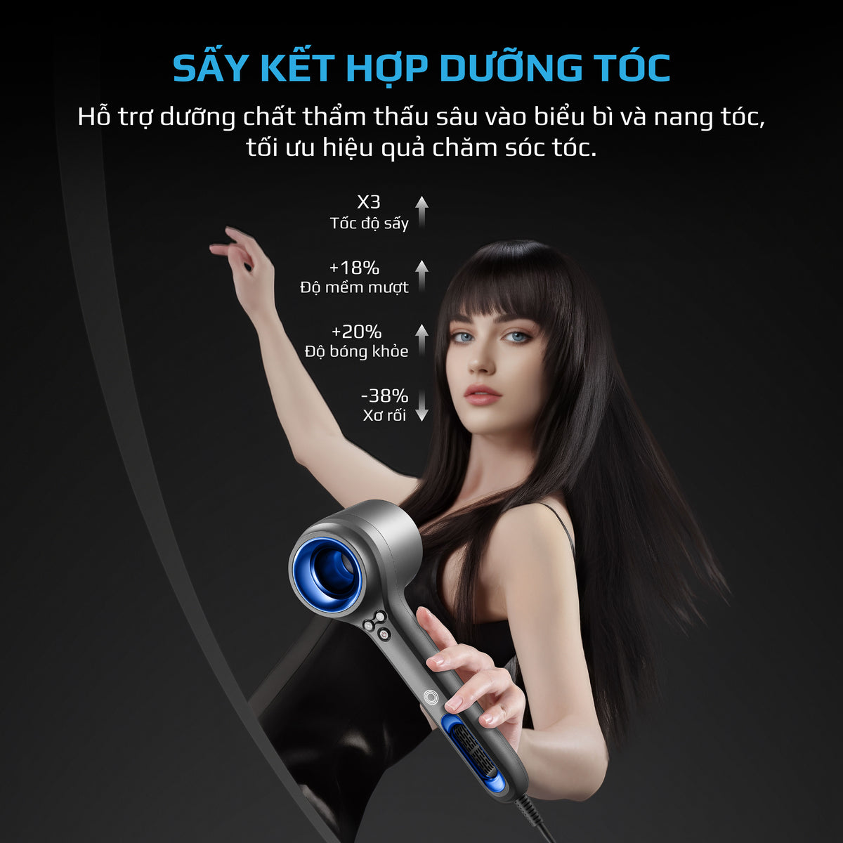→ Sấy nhanh hơn, giảm thời gian tiếp xúc nhiệt → tóc ít hư tổn hơn