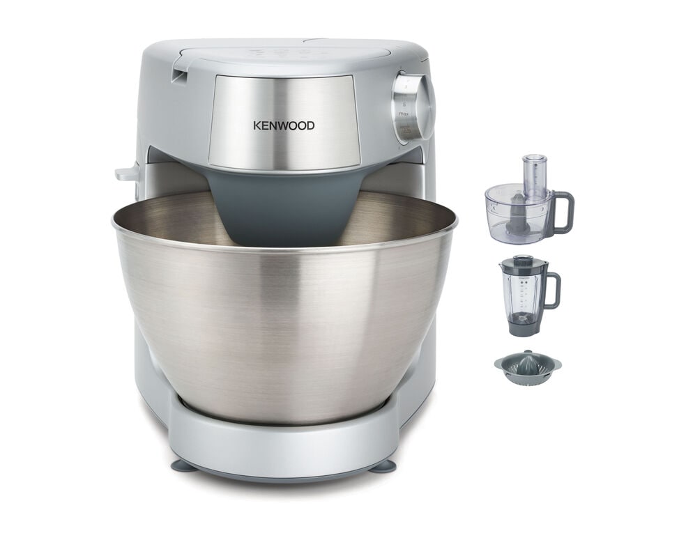 Máy trộn để bàn Kenwood Prospero Plus KHC29.H0SI có màu chủ đạo là màu bạc sang trọng với cối xay được làm bằng thép không gỉ, sẽ giúp cho không gian bếp của bạn trở nên tinh tế, gọn gàng hơn. Ngoài ra nhờ được làm bằng chất liệu cao cấp sẽ giúp cho sản phẩm chịu đựng được va đập, bền lâu theo thời gian. Máy được trang bị các bộ phận chất lượng cao, đã được kiểm chứng và nhiều phụ kiện tiện lợi đi kèm, sẽ là trợ thủ đắc lực cho bạn, từ việc xay, nhào, đánh trứng một cách hoàn hảo đến chế biến các nguyên liệu cần thiết để có được những bữa cơm, những chiếc bánh mì, bánh ngọt ngon tuyệt vời. Máy trộn để bàn này có chức năng trộn, khóa liên tự động an toàn nhằm đảm bảo tính an toàn cho người sử dụng. Thiết bị này được trang bị điều khiển cảm biến tốc độ điện tử, được thiết kế để duy trì tốc độ trong các điều kiện tải khác nhau, chẳng hạn khi trộn bột bánh mì hoặc khi thêm trứng vào hỗn hợp bánh. Do đó, bạn có thể nghe thấy một số thay đổi về tốc độ trong quá trình vận hành khi thanh trộn điều chỉnh theo tải và tốc độ đã chọn, điều này là bình thường.