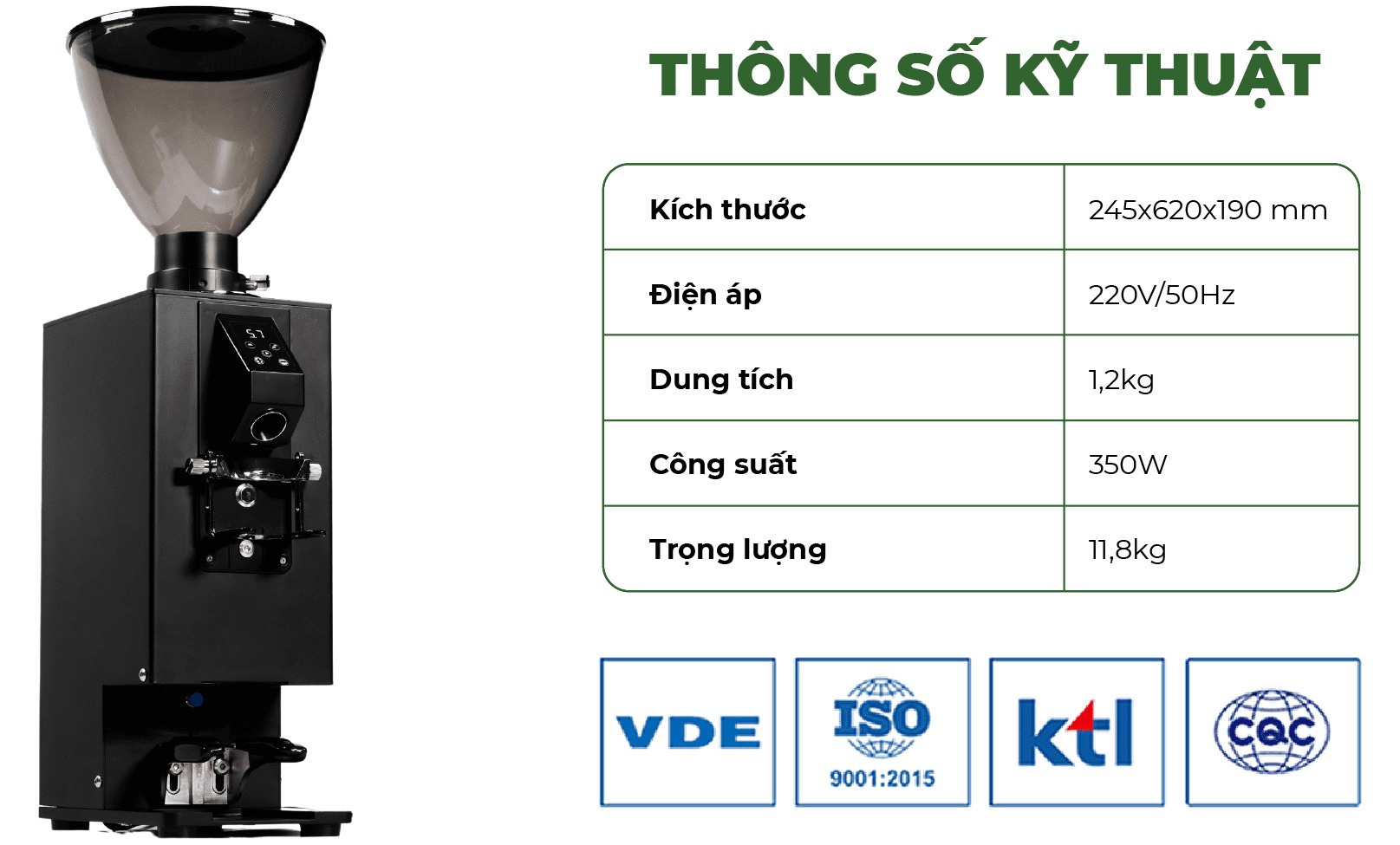 Lưỡi dao bằng hợp kim không gỉ đạt chuẩn chất lượng Ý, cùng hệ thống điều chỉnh độ mịn, giúp tạo ra bột cafe mịn đều, phù hợp cho nhiều loại thức uống khác nhau mà không làm mất đi hương vị.