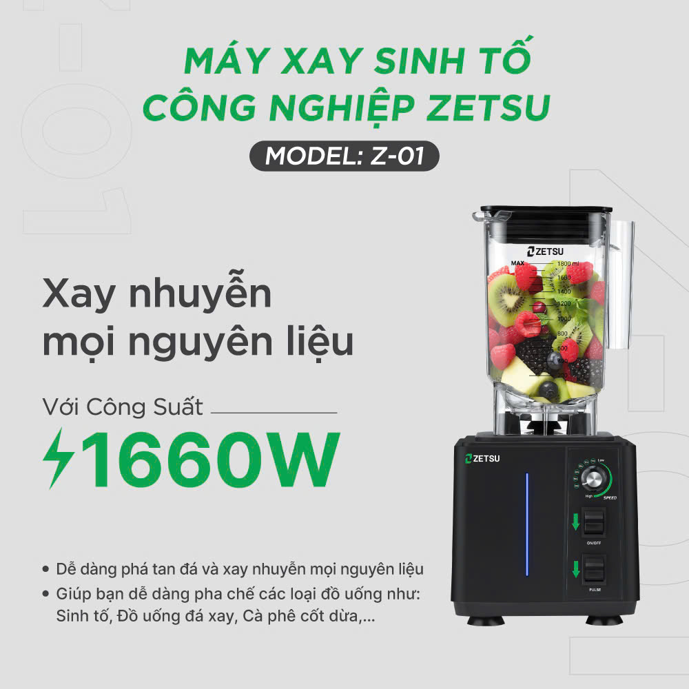 Máy Xay Sinh Tố Công Nghiệp Zetsu Z-01 – Lựa Chọn Hoàn Hảo Cho Quán Cà Phê