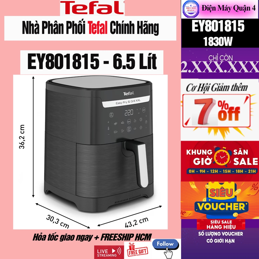 Dung tích giỏ chiên: 6.5L, chiên gà nguyên con 1.6kg.