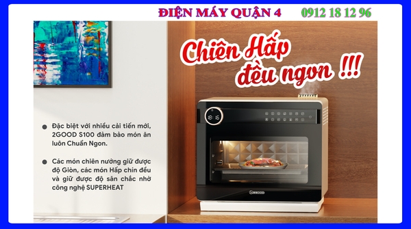 Tóm lại, Nồi Chiên Không Dầu Hơi Nước 2GOOD S100 là một sản phẩm tiện lợi, an toàn và tiết kiệm cho gia đình bạn. Bạn có thể chiên nhiều món ăn ngon mà không cần dầu mỡ, giảm nguy cơ béo phì và các bệnh tim mạch. Nồi còn có chức năng hấp hơi nước, giúp thực phẩm chín đều và giữ được độ ẩm và dinh dưỡng. Ngoài ra, nồi còn có thiết kế đẹp mắt, dễ vệ sinh và bảo quản. Bạn có thể mua nồi chiên không dầu hơi nước 2GOOD S100 ở Điện Máy Quận 4 với giá cả hợp lý và chất lượng đảm bảo. Hãy nhanh tay đặt hàng ngay hôm nay để nhận được nhiều ưu đãi và quà tặng hấp dẫn từ Điện Máy Quận 4.