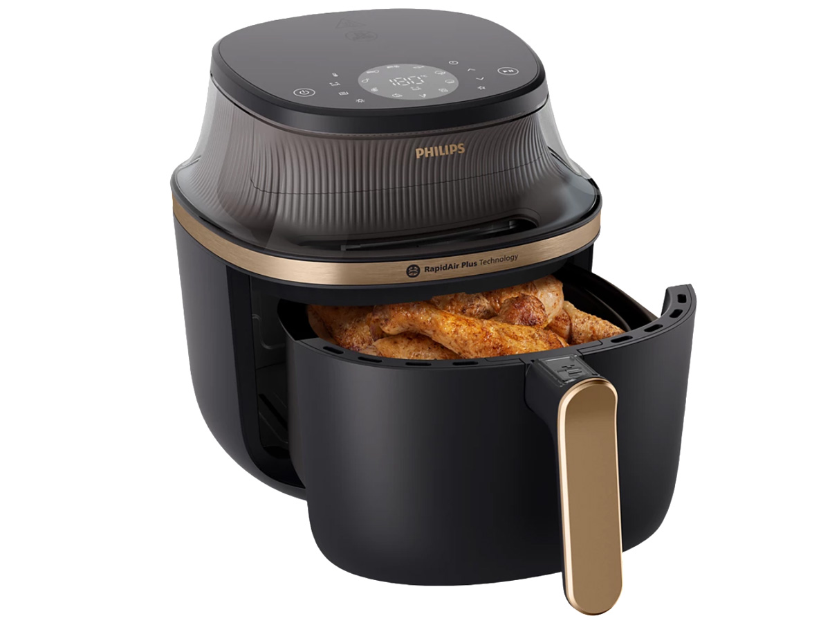 - Công suất 2.000W, công nghệ Rapid Air Plus chiên nướng an toàn cho sức khỏe, chín đều 2 mặt không cần lật.