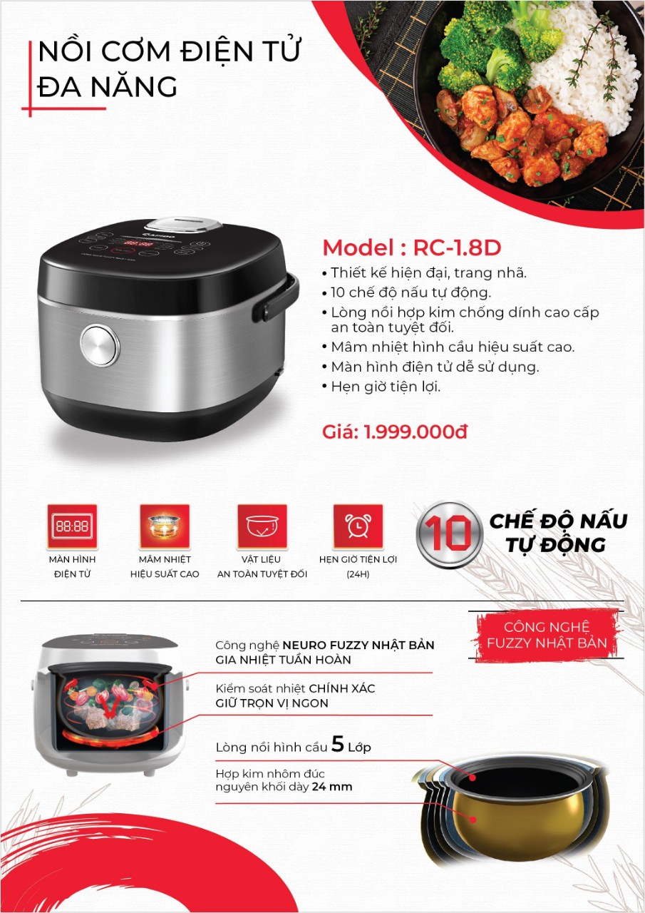 Nồi cơm điện tử Rapido RC-1.8D - giá cực tốt