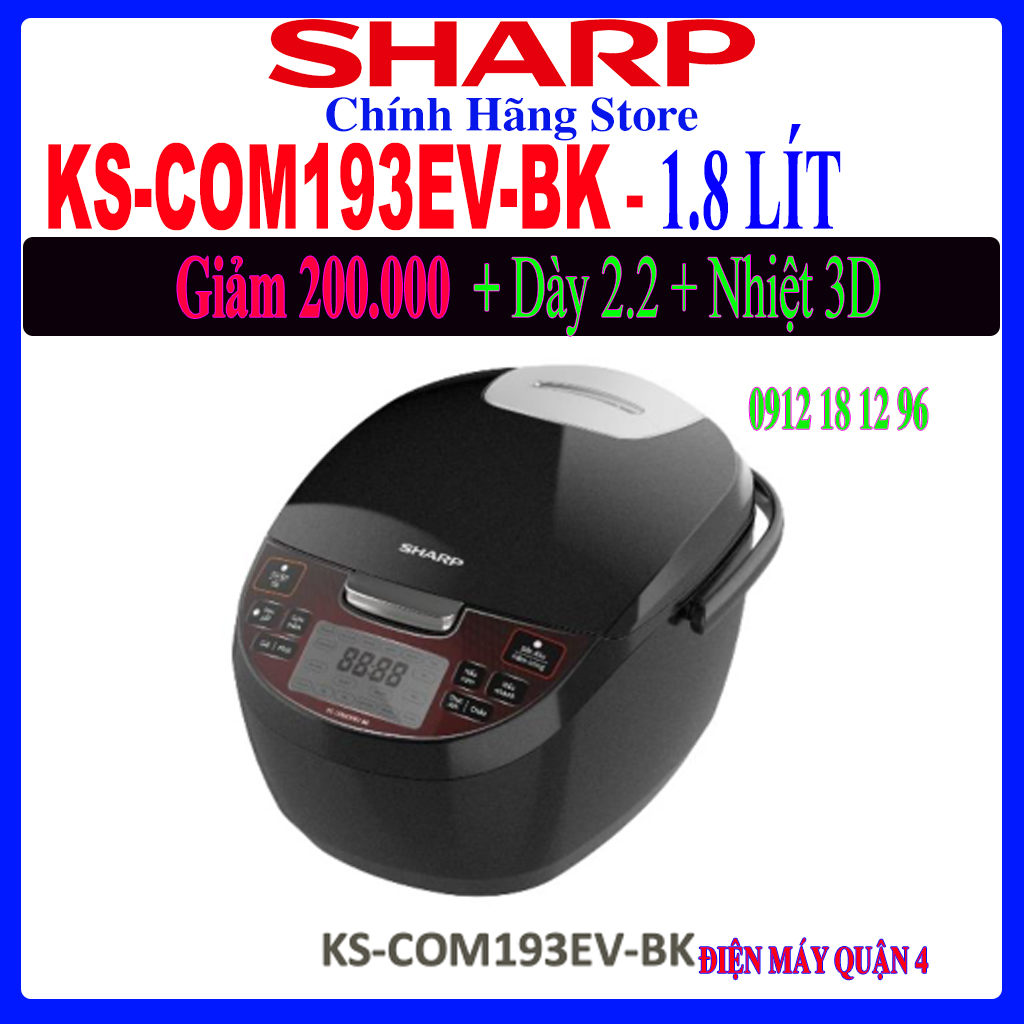 Nồi Cơm Điện Tử Sharp KS-COM193EV-BK 1.8 Lít sử dụng Nhiệt 3D tỏa đều 3 hướng, hỗ trợ nấu cơm ngon hơn Tăng khả khả năng giữ ấm lâu hơn.