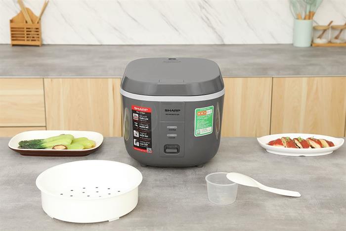 Nồi cơm nắp gài Sharp 1.8 lít KS-PR19ETV-GR là lựa chọn lý tưởng cho mọi gia đình Việt nhờ thiết kế tinh tế, công nghệ nấu 2D hiện đại, lòng nồi chống dính bền bỉ và khả năng giữ ấm lâu đến 5 giờ.