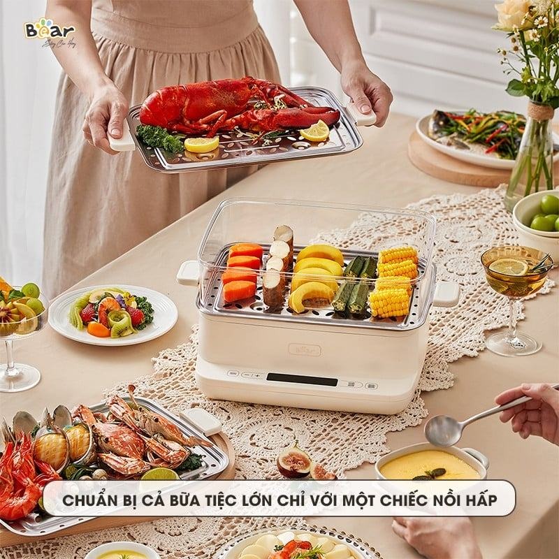 Nồi hấp Bear 12L SB-NH12L tích hợp 6 chế độ hấp, cho phép bạn thỏa sức sáng tạo với đa dạng các món ăn từ vô số nguyên vật liệu khác nhau, như: Hải sản, bánh bao, sườn heo, thịt gà, rau củ, hấp đồ mềm, đồ cứng…