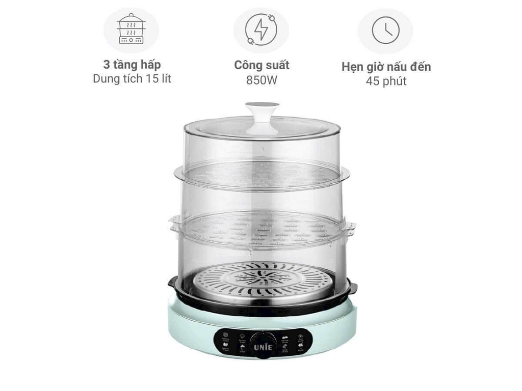3 tầng hấp của nồi Unie UE680 đều dễ tháo rời, dễ lau chùi sau mỗi lần sử dụng. Bên cạnh đó, máy có tính năng khử khuẩn.